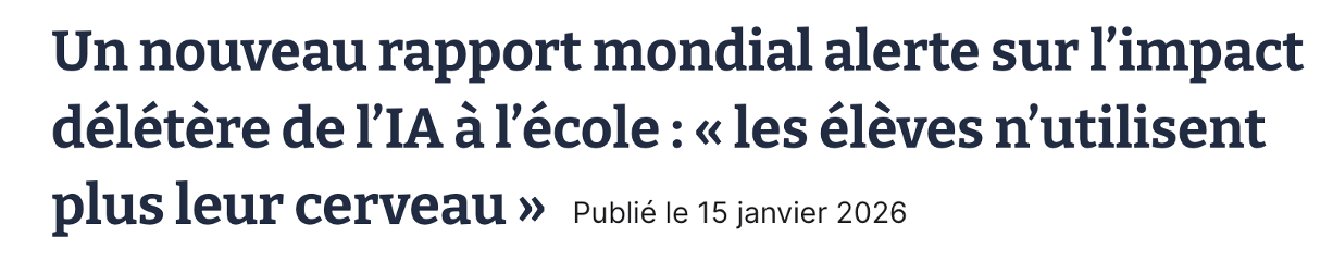 Lire ce rapport ( ou le faire analyser par un IA…) est un véritable “wake up call”… «Avec L’IA, c’est facile. Tu n’as plus besoin d’utiliser ton cerveau », lâche un élève interrogé pour le rapport. 😱