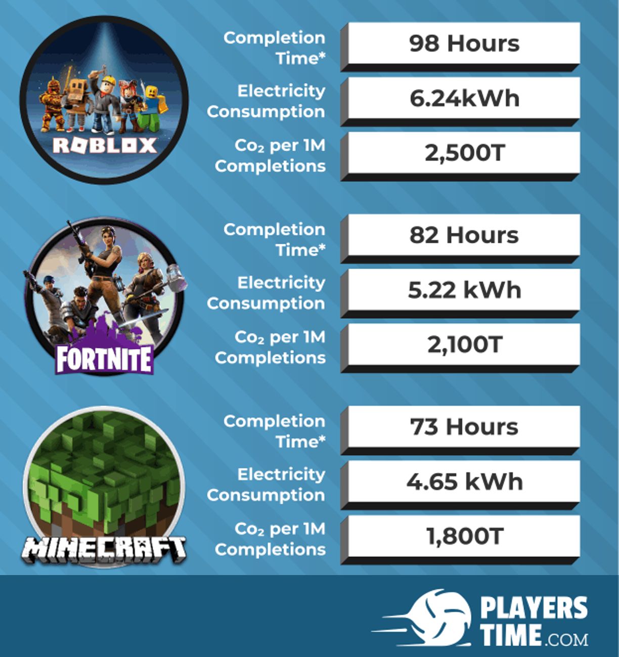 En effet, les jeux dits "AAA" (comme Call of Duty ou Assassin’s Creed) auxquels on joue généralement par sessions limitées, sont souvent pointés du doigt pour leur consommation énergétique élevée, car ils demandent des graphismes ultra-précis et des serveurs puissants. Pourtant, des titres comme Roblox ou Fortnite, bien moins exigeants techniquement, finissent par avoir un bilan carbone bien plus lourd… parce qu’on n’arrête jamais d’y jouer.