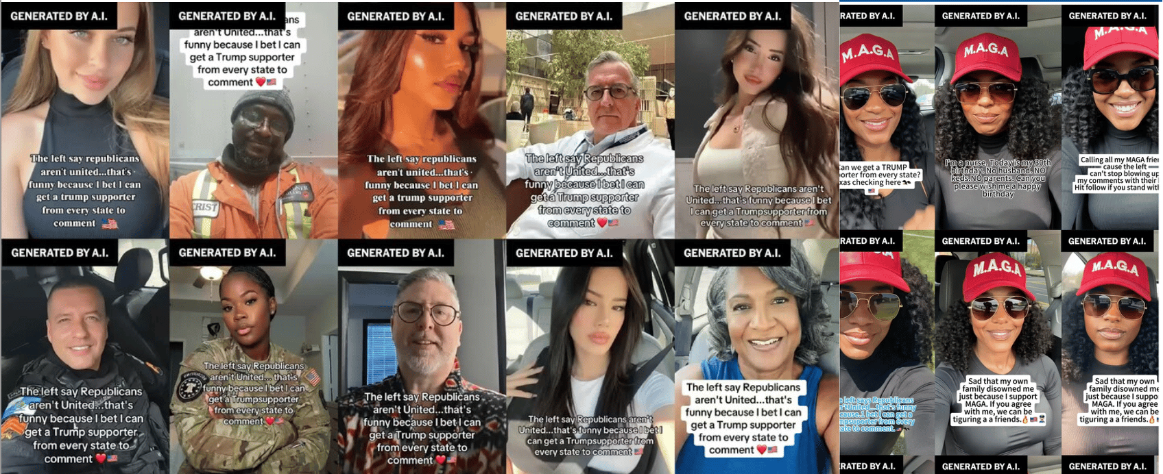 Les équipes du New York Times ont eux identifié 304 comptes TikTok pro-Trump générés par IA depuis janvier 2026. Ces avatars qui répètent le même script et cumulent plus de 500 000 vues par post ont pour but de donner l’illusion d’un consensus populaire massif juste avant les midterms. Mais les chercheurs et TikTok l’admettent : on ne sait pas qui est derrière. TikTok supprime les comptes mais d’autres naissent chaque jour…