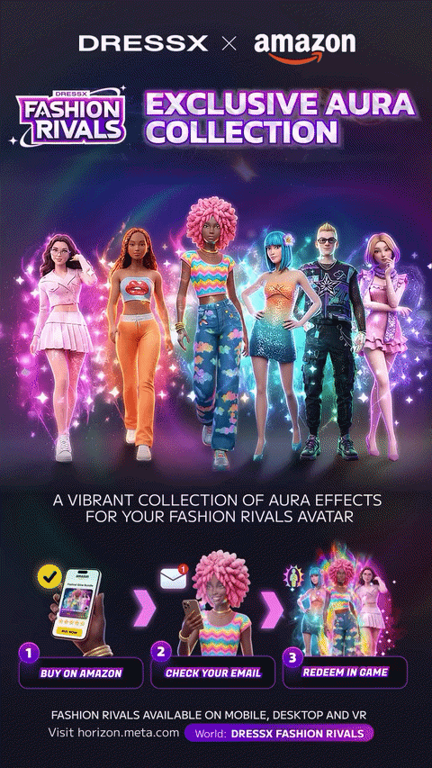 Les clients achètent leurs actifs sur Amazon puis les débloquent via un code dans l'expérience Fashion Rivals sur Meta Horizon. Cette alliance marque la toute première fois que des vêtements virtuels intègrent le catalogue du géant de l'e-commerce pour toucher une audience mainstream.