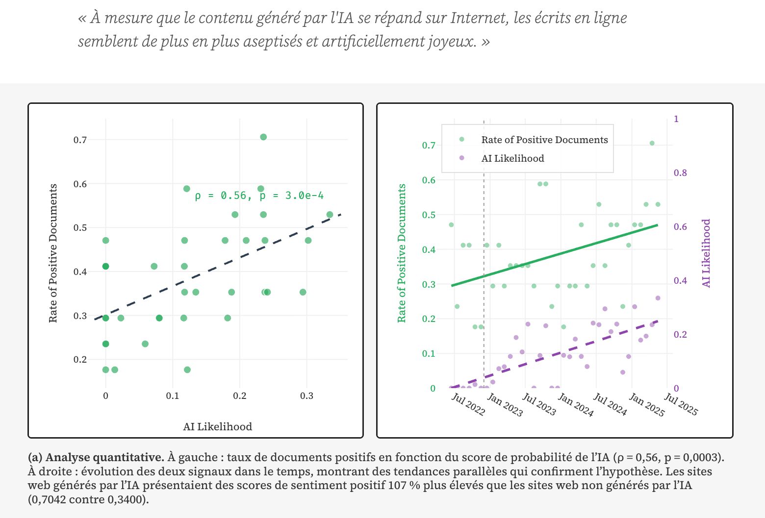 Les textes IA affichent un score de positivité 107 % plus élevé que les contenus humains, reflétant les biais optimistes des grands modèles de langage.