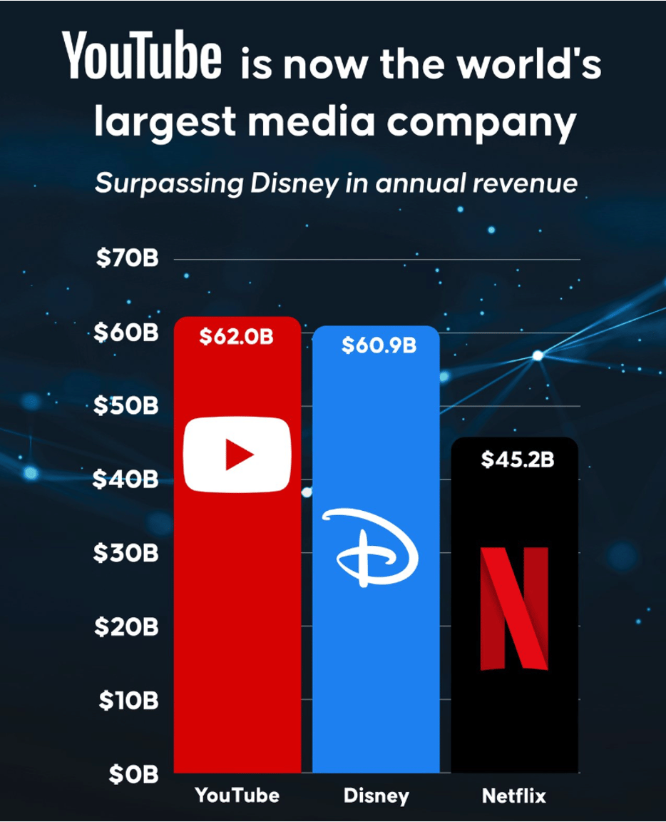 Disney a mis un siècle à bâtir son empire. YouTube l’a surpassé en vingt ans, en laissant la communauté le construire à sa place….