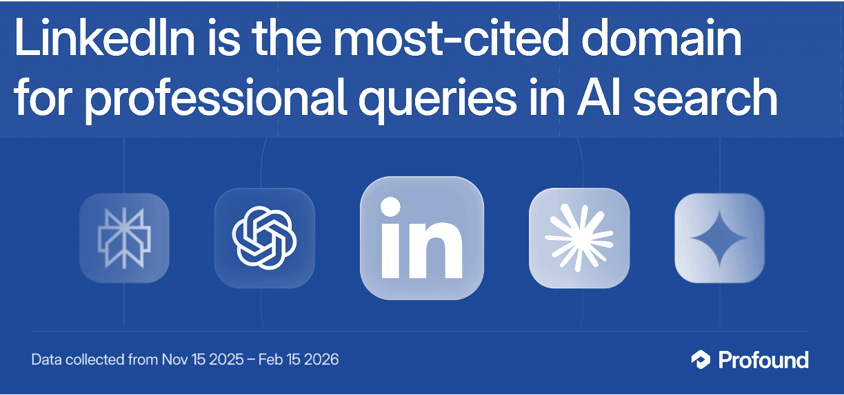 LinkedIn est devenu, début 2026, la source n°1 citée par les IA pour les requêtes professionnelles selon une étude de Profound, passant de la 11e à la 5e place en trois mois.