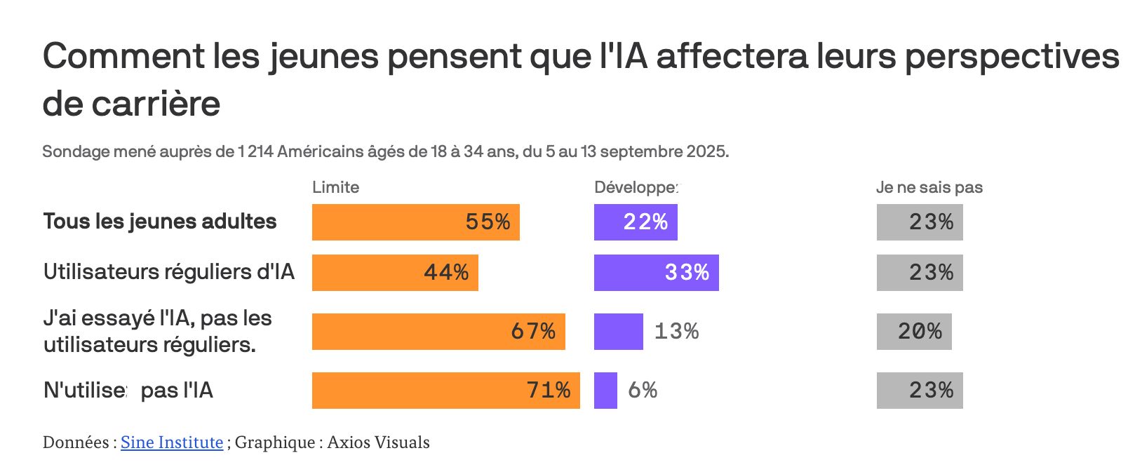 Les jeunes Américains divisés sur l'impact de l'IA sur leur carriÚre.