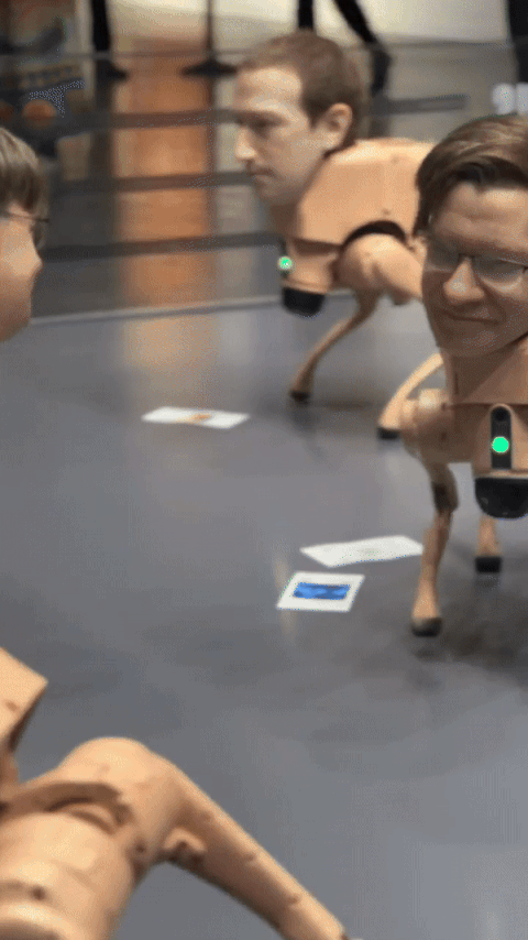 Art : des robots chiens aux tĂȘtes dâoligarques de la tech.
