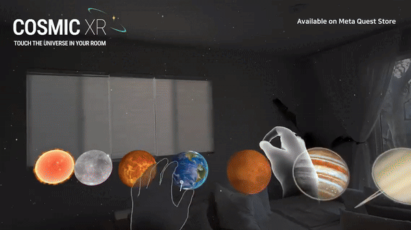 Explorer lâespace depuis sa chambre avec un casque Quest est dĂ©sormais possible sur Cosmic XR. Lâunivers entier dans votre salon : manipulez les planĂštes, plongez dans les nĂ©buleuses, et comprenez le cosmos comme jamais. La rĂ©alitĂ© mixte rend lâastronomie accessible, magique et interactive ; une expĂ©rience Ă vivre đ.
