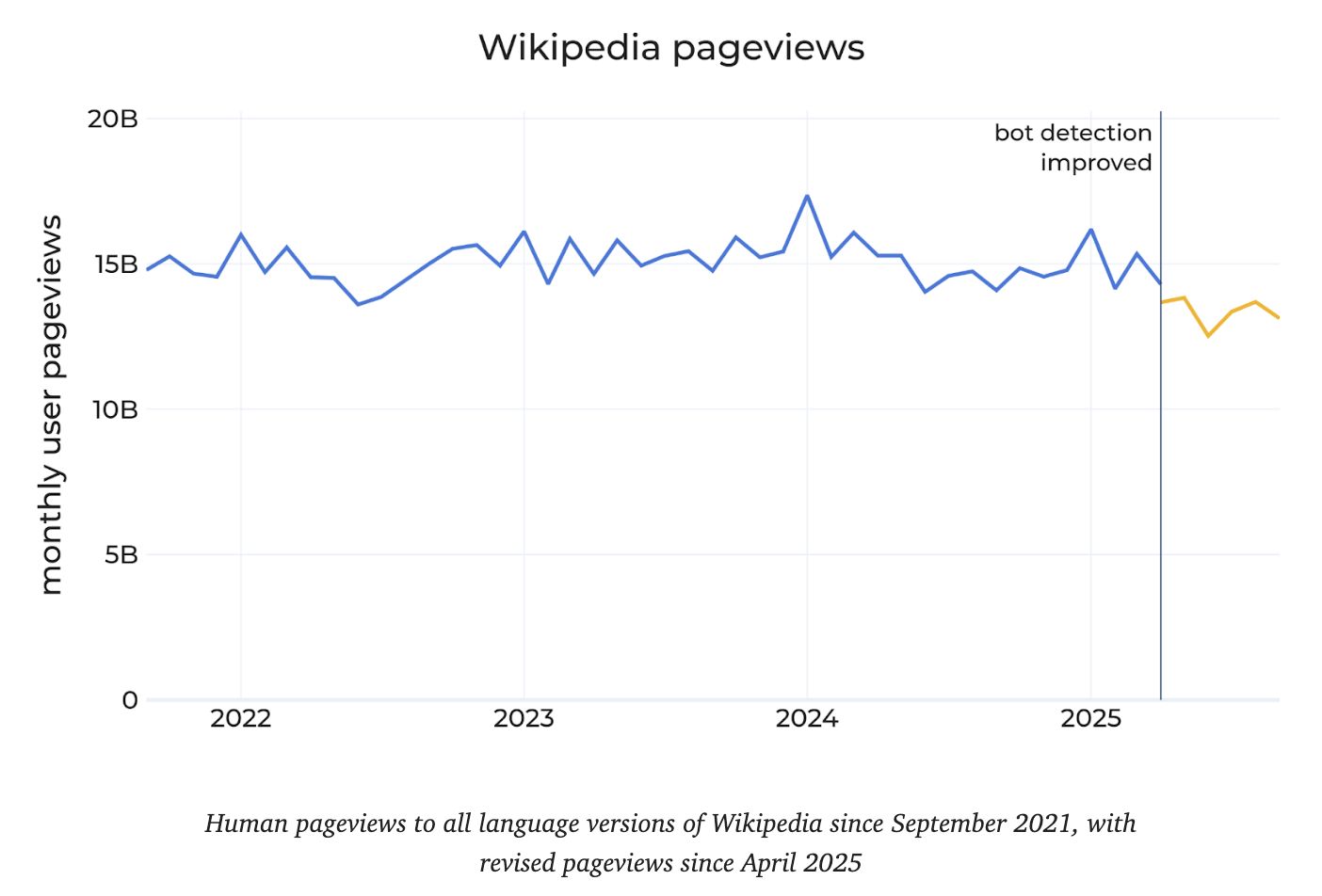La Fondation WikimĂ©dia alerte de son cotĂ© sur la chute de son trafic humain, causĂ©e par lâessor des chatbots dâIA (comme ChatGPT ou Gemini) qui recyclent ses contenus sans rediriger vers la source. La Fondation WikimĂ©dia craint pour sa viabilitĂ© : moins de visiteurs signifie moins de bĂ©nĂ©voles et de dons, alors que lâIA sâentraĂźne massivement sur ses articles. En mai 2025, une baisse de 8 % des pages vues a Ă©tĂ© constatĂ©e, imputĂ©e Ă lâIA et aux moteurs de recherche qui rĂ©pondent directement aux requĂȘtes.
