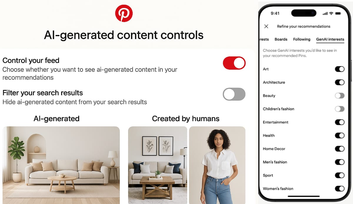 Pinterest lance une option pour filtrer les contenus générés par IA.