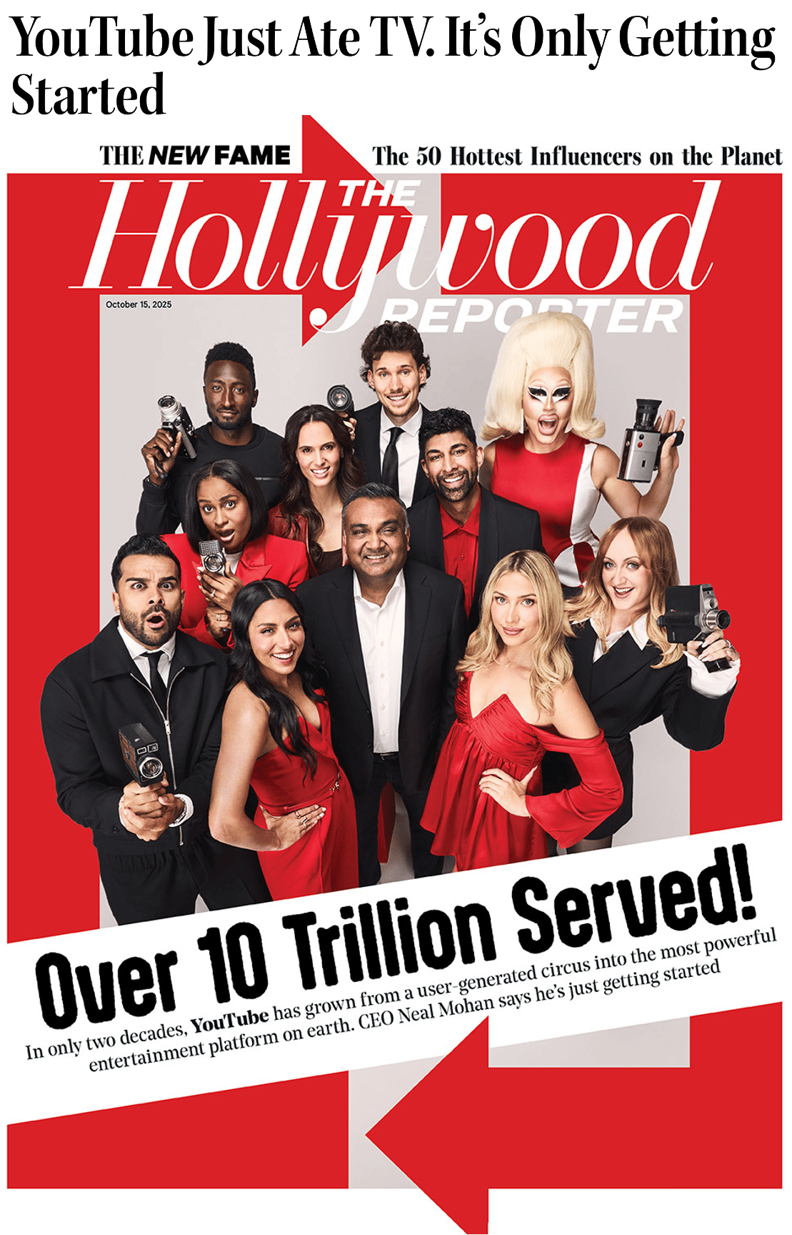 Le Hollywood Reporter, bastion du vieux Hollywood, et son article "YouTube Just Ate TV. Itâs Only Getting Started" dressent un portrait implacable : YouTube n'est plus un simple terrain de jeu pour les amateurs, c'est un mastodonte qui dĂ©vore la tĂ©lĂ© traditionnelle Ă pleines dents avec cette sentence en guise de conclusion «Hollywood sâadapte ou disparaĂźt ».